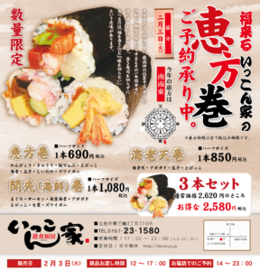 2026年 福来る 数量限定 いっこん家の恵方巻ご予約承り中。